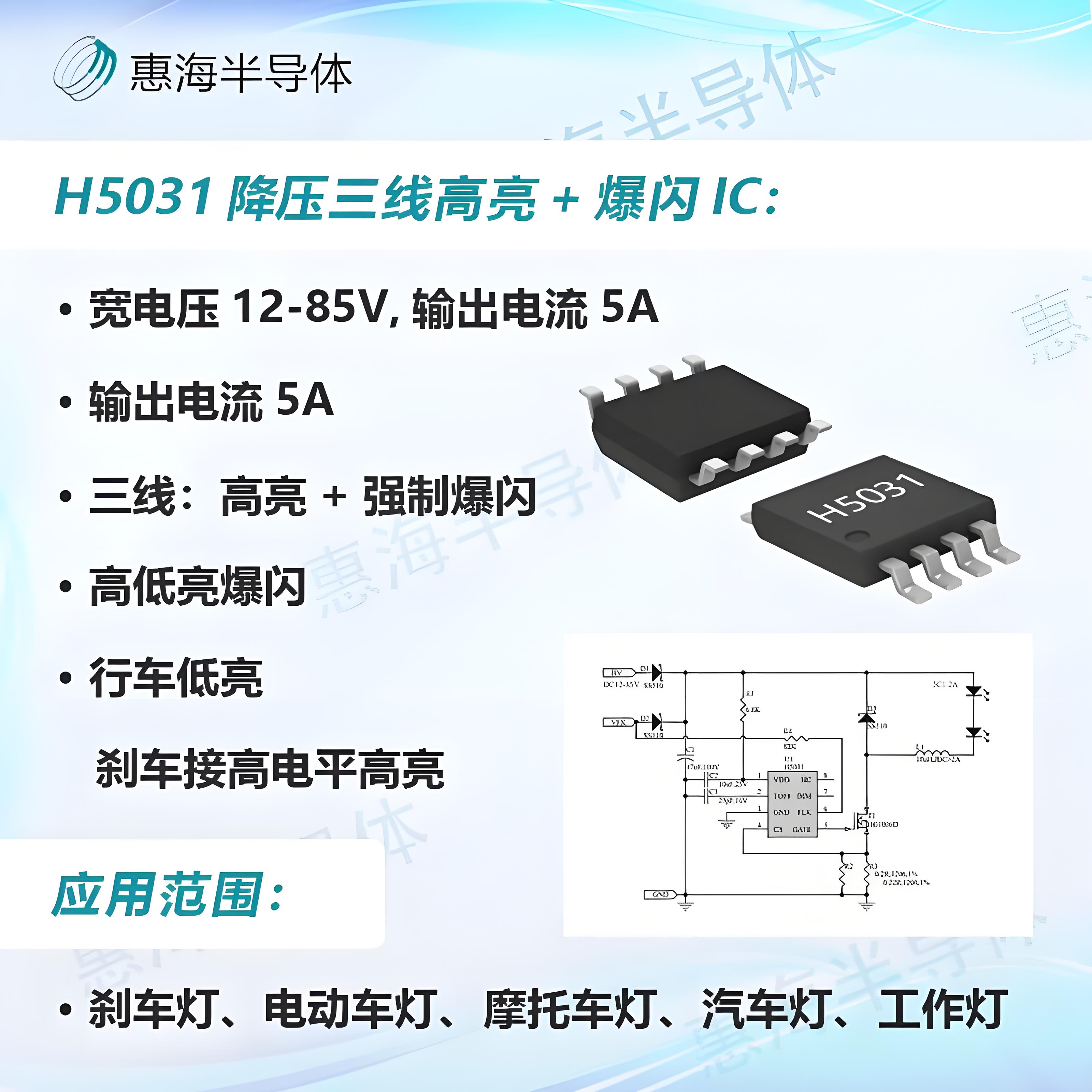 在现代车辆照明系统中,一款高性能、多功能的LED驱动芯片至关重要。H5031作为一款专为车灯设计的降压型恒流驱动芯片,为各类车辆照明提供了全面的解决方案。