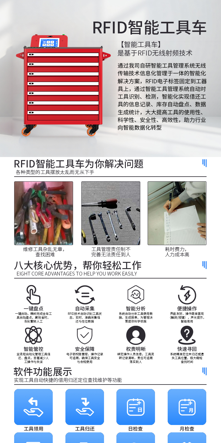 智能RFID工具车地铁高铁轨道交通维护工具存储柜电力巡检专用推车