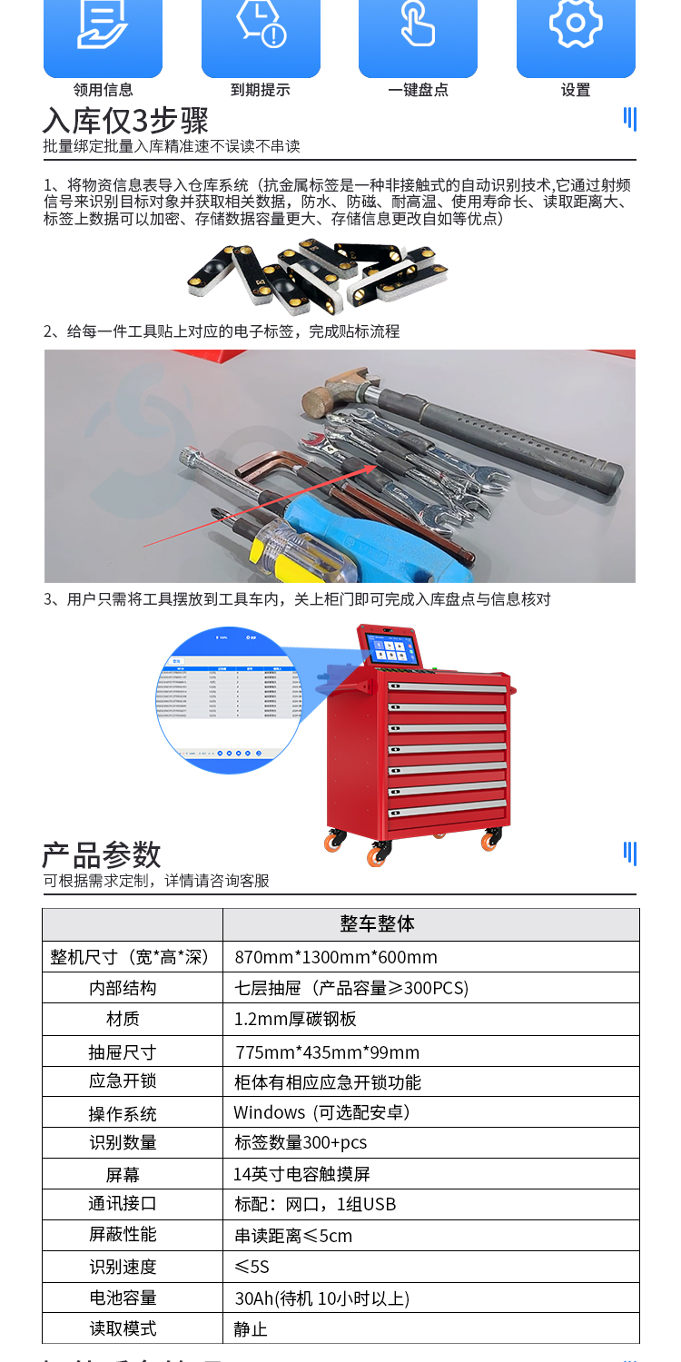 航空制造RFID工具车智能工具管理系统飞机维修汽车制造防丢防盗柜
