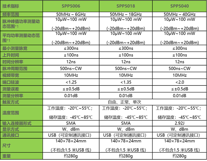 SPP5040:频率输入范围50MHz~40GHz脉冲峰值功率计
