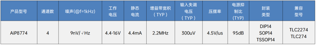 AiP8774是一款四路轨到轨输出运算放大器,能够在单电源或双电源应用中增加动态响应范围。该运算放大器是一款CMOS运算放大器,拥有低噪声和低输入失调电压等特性,主要应用于音频、工业和仪表仪器等领域。