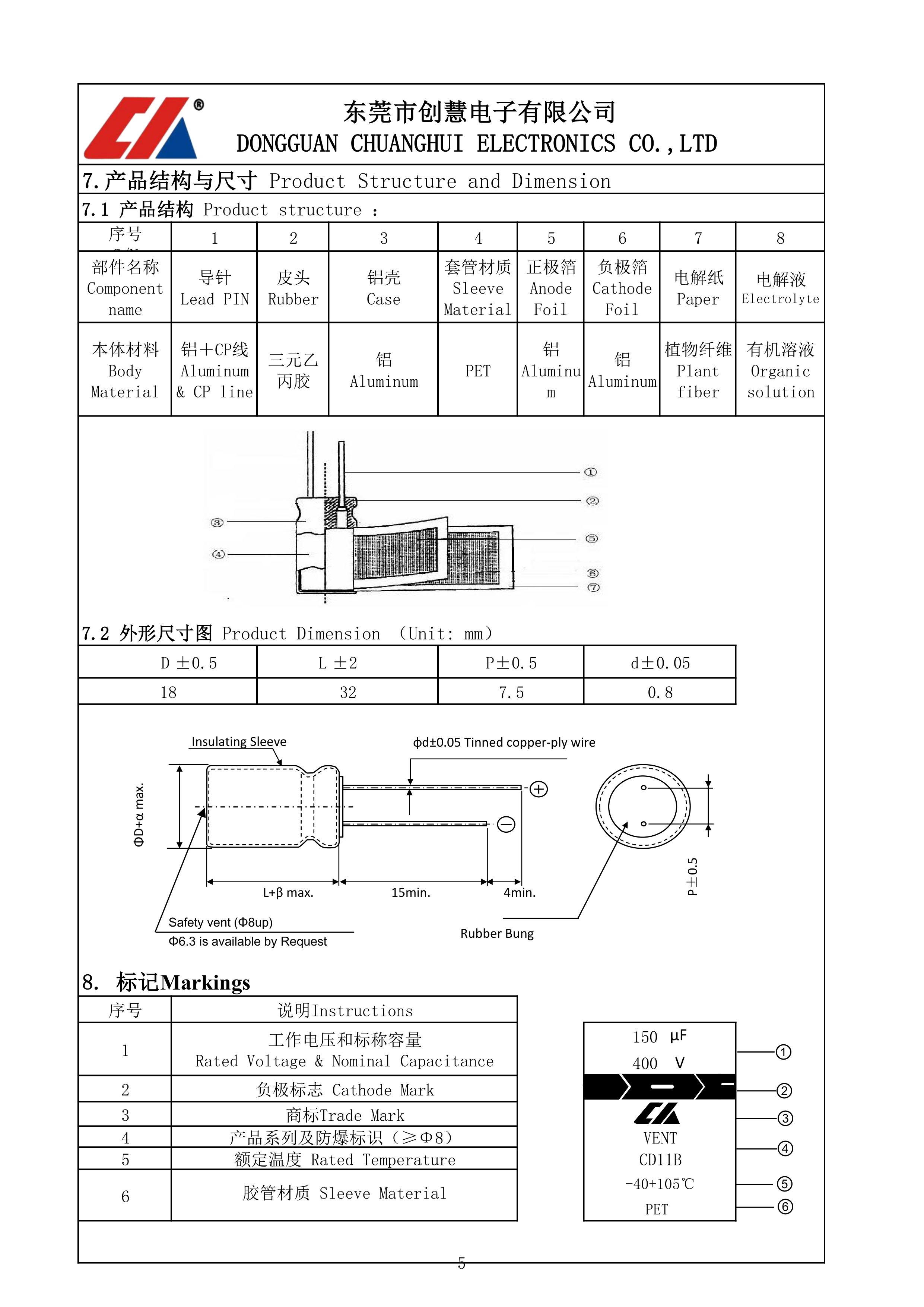 铝电解电容器CD11B系列150uF 400V ±20%插件,D18xL32mm