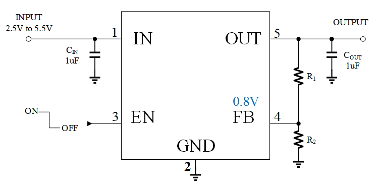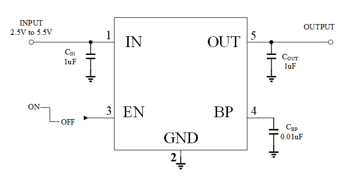 - 工作输入电压范围:2.5V~5.5V
