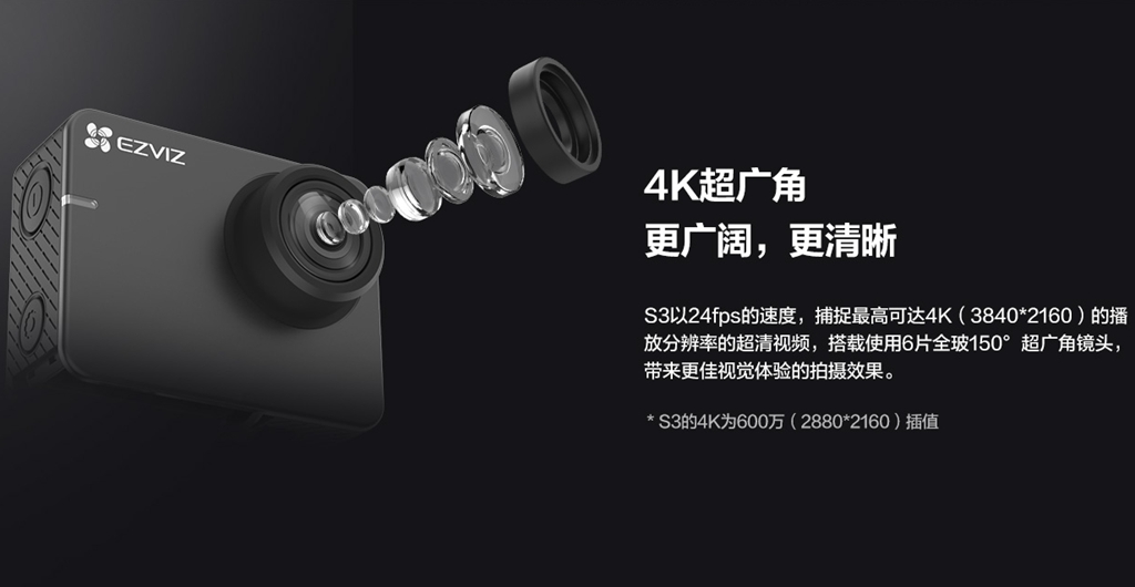 CMOS图像传感器,上面提到的,实际上是600万像素,通过插值实现4K效果。配合S3 6片玻璃的超广角镜头,可以拍摄更广的画面,事实上用于行车记录仪就是一个非常不错的场景。