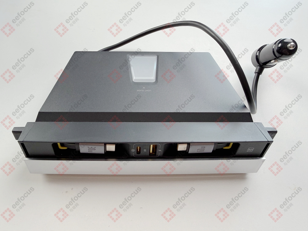 外观没什么好分析的,扩展坞供电使用12V的点烟器接口,因为这个产品本身就是针对特斯拉Model 3/Y,所以点烟器的最大的输出功率应该有150W以上,那转换下来应对一般的电子设备绰绰有余。笔者也没有特斯拉用于产品实际的测试体验,所以有使用过的小伙伴可以来谈谈使用体验。本文就直接拆解,看看内部结构以及硬件方案。
