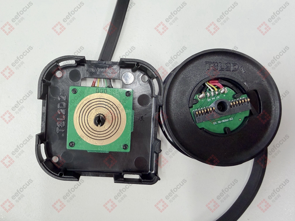 拆解完发现内部呈现高度模块化设计,首先两条Type-C伸缩线的结构,虽然输出功率不同,但是结构布局是一样的,都是采用滑环供电设计。滑环PCB上设有五个同心环,分别对应电源正负极、USB数据线和CC信号线,通过电刷与固定滑环接触实现电力传输。但是有个疑问,这种结构用久了会不会接触不良?