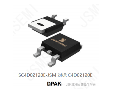 SC4D02120E-JSM 采用 TO-252-2 封装(又称 DPAK 封装),该封装形式与 C4D02120E 一致,引脚布局和外形尺寸完全兼容,可直接替换使用,无需修改 PCB 设计,为客户节省了产品升级的研发周期和成本。