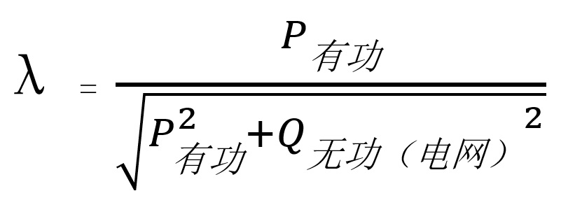 功率因数λ的定义式直接体现了其与P、Q的关联。