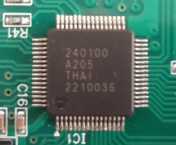 在整个板子中心的部分是它的核心RAJ240100芯片。这是一块10mm*10mm大小0.5mm间距LQFP封装的芯片,集成有瑞萨超低功耗RL78 CPU内核,代码闪存为128KB,数据闪存为4KB并且还自带7KB的SRAM,另外该芯片还具CSI、I2C、UART、CAN等多个串行接口以及16位、12位等多种定时器。