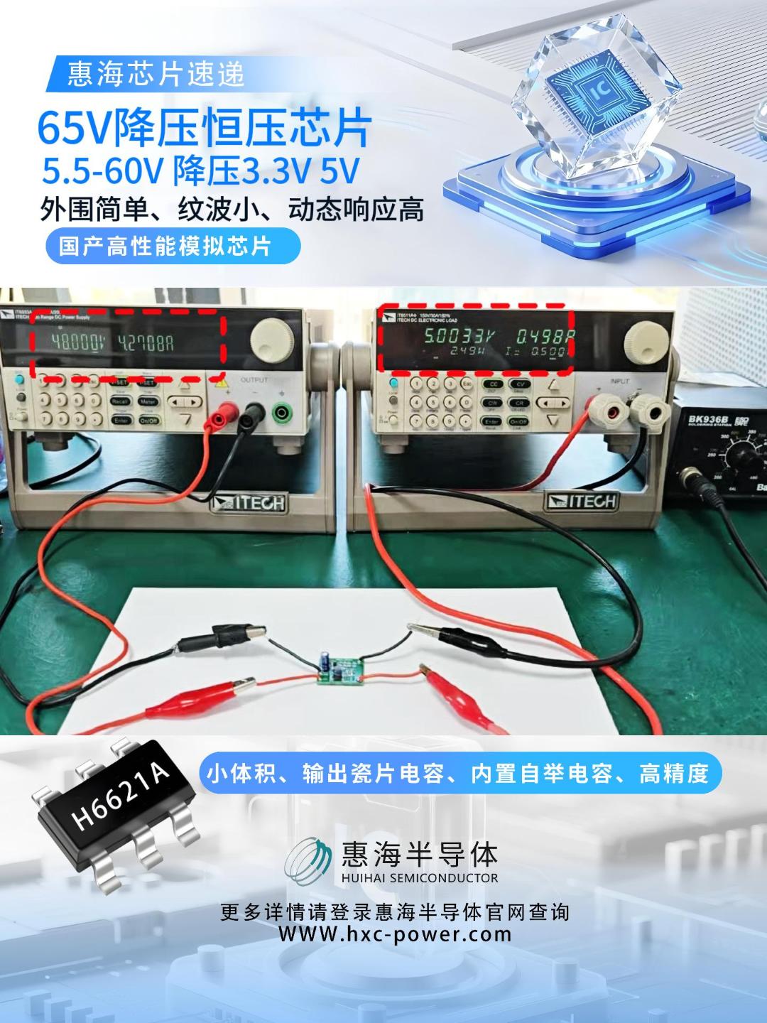 H6621A是一款内置莫斯的降压恒压芯片,5.5伏至60伏宽输入电压0.5安持续电流,
