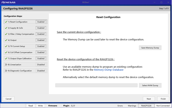 我们可以看到该软件给出了包括电源、线圈配置在内容的9个方面,工程师们可以以向导的形式对芯片进行配置。
