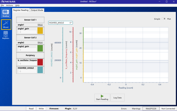 除了直观的给出当前位置感应的效果之外,该GUI工具还包含有对芯片的配置功能。点击软件的Wizard功能。
