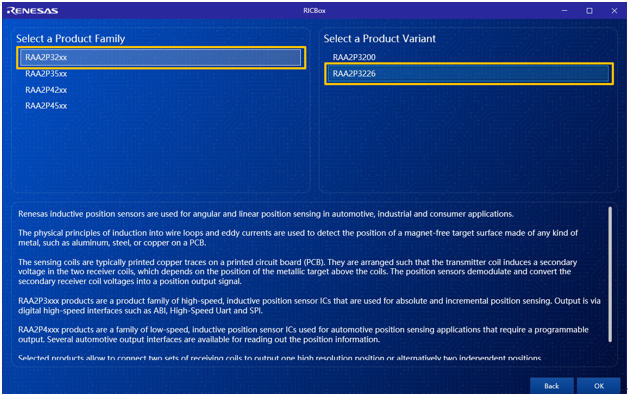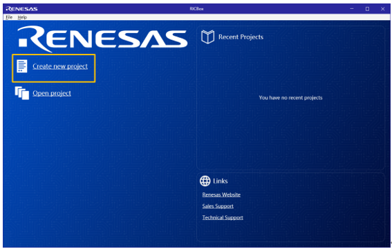 点击“Create new project”创建一个新的工程,根据评估板的类型选择RAA2P32xx家族中的RAA2P3226芯片,点击“OK”后系统开始加载界面。