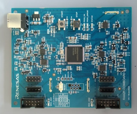 除了MCU外,该板卡最引人注目的就是与位置传感器连接的接口了,为了便于工程师们评估,瑞萨公司给出了2个接口(J3-1、J3-2)与传感器子板进行连接,并且每一种接口还给出了多种形式(J1-1、J1-2、J2-1、J2-2)。特别值得称赞的是,这些接口的定义都在板卡上标明,大大节约了工程师们的查找资料的时间。除此之外,RAA2P-COMBOARD板卡还提供了两个按键(START和STOP)用于控制启动和停止,一个USB Type B接口用于与上位机软件进行连接。